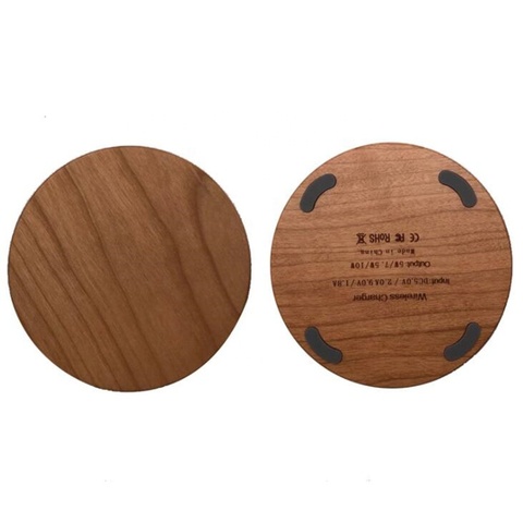 Taiductive 책상 라운드 휴대용 10W 무선 유도 충전기 빠른 슬림 나무 전화 충전기 패드 나무 무선 충전 스테이션